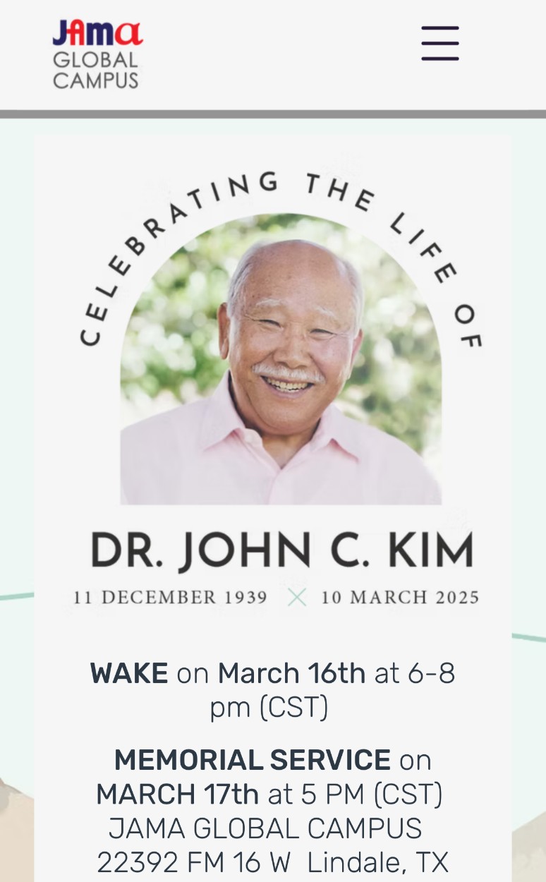 JAMA Dr. John C. Kim has gone to be with his Lord and Savior Jesus Christ.