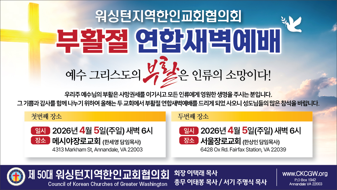 2026 워싱턴지역한인교회협의회 부활절 연합새벽예배 포스터