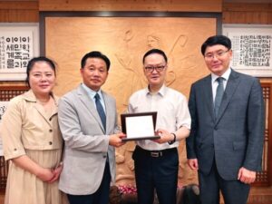 아펜젤러선교사가 1887년에 세운 한국 한국최초의  감리교 신학대학교(당시 배재학당) 류경동총장 일행이 미주 한국선교 140주년을 맞이하여 미동부를 방문, 미주 아펜젤러 선교대회장인 장재웅목사에게 감사패를 전달하는 모습.