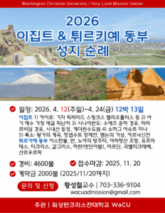 이집트 튀르키예 동부 성지순례(12박13일)에 초대합니다. 워싱턴크리스챤대학교가 함께 하며, 좋은 배움과 감동의 현장이 될 것입니다.